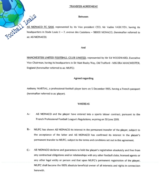 Documents have been leaked which claim to explain the full details of Anthony Martial's transfer to Manchester United.